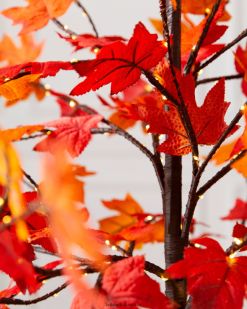 - Alle Produkte dieser Kollektion verfügen über eine Reihe von Ahornblättern in verschiedenen Orangetönen