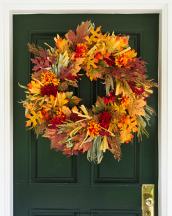 Verschönern Sie Ihre Herbstdekoration mit dem zeitlosen Look sich drehender Blätter. Präsentieren Sie es an Ihrer Tür, Ihrem Kaminsims und Ihren Stufen für einen lebendigen Farbtupfer und Wärme.