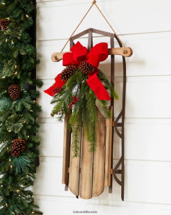 Genießen Sie lustige Erinnerungen an das Spielen im Schnee mit einem dekorativen Weihnachtsschlitten. Mit seinem Vintage-Design verleiht es jedem Raum rustikalen Charme, vom Kamin bis zur Veranda.