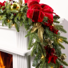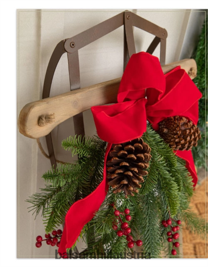 - mit Kiefern- und Zedernlaub mit Tannenzapfen, Beeren und einer roten Schleife