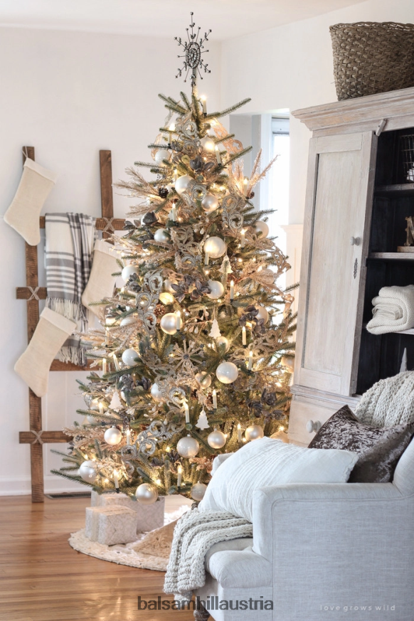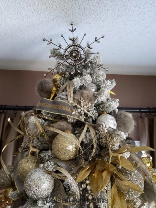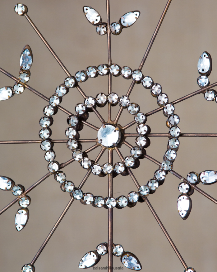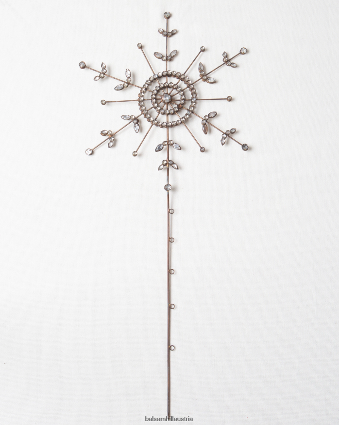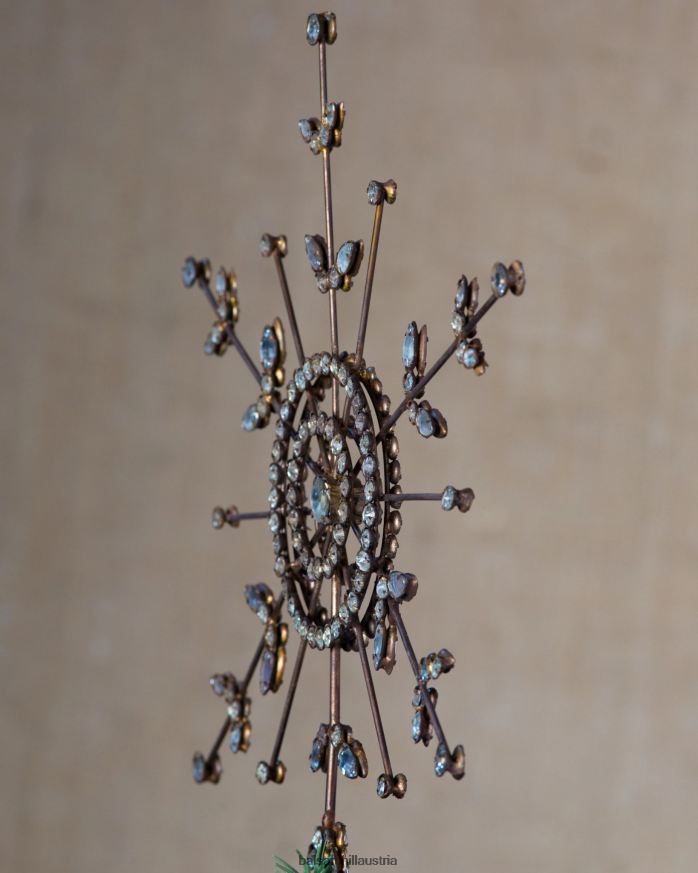 Unser von Hand gefertigter und verzierter Schneeflockenaufsatz verleiht jedem Weihnachtsbaum Vintage-Eleganz. Kombinieren Sie diese perlenbesetzte Baumspitze mit passenden Ornamenten, um Ihrer Weihnachtsdekoration einen Hauch von rustikalem Charme zu verleihen.