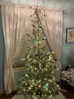 - verfügt über ein doppelseitiges Schneeflocken-Design mit integriertem Stangenständer zur bequemen Befestigung an der Baumspitze