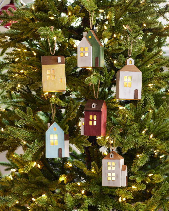- lit Bauernhaus-Dorfornamente aus Holz, 6er-Set