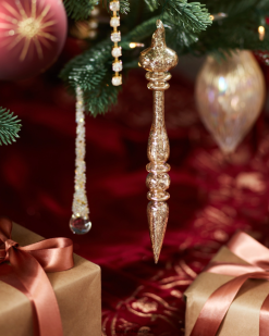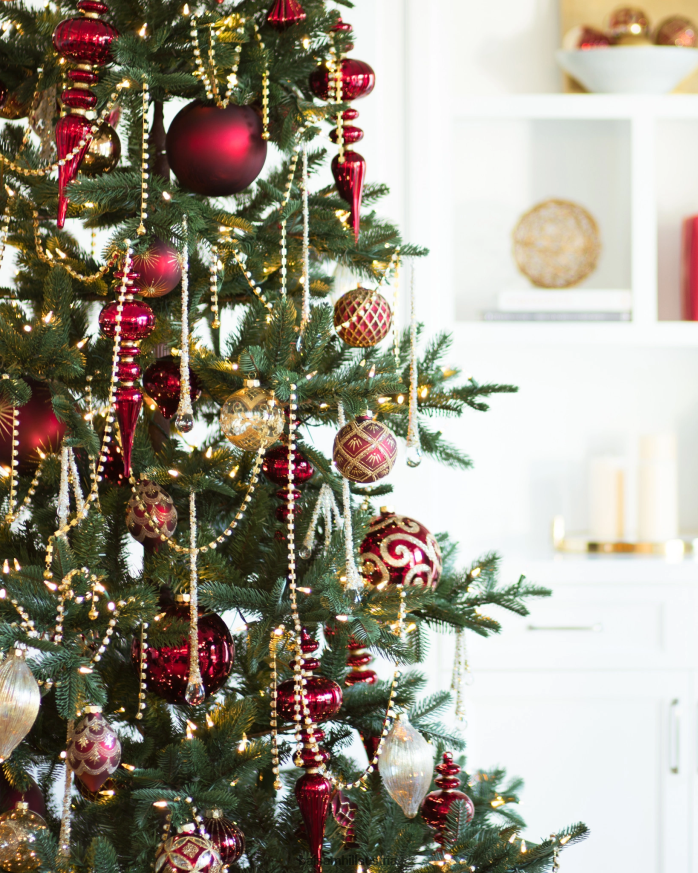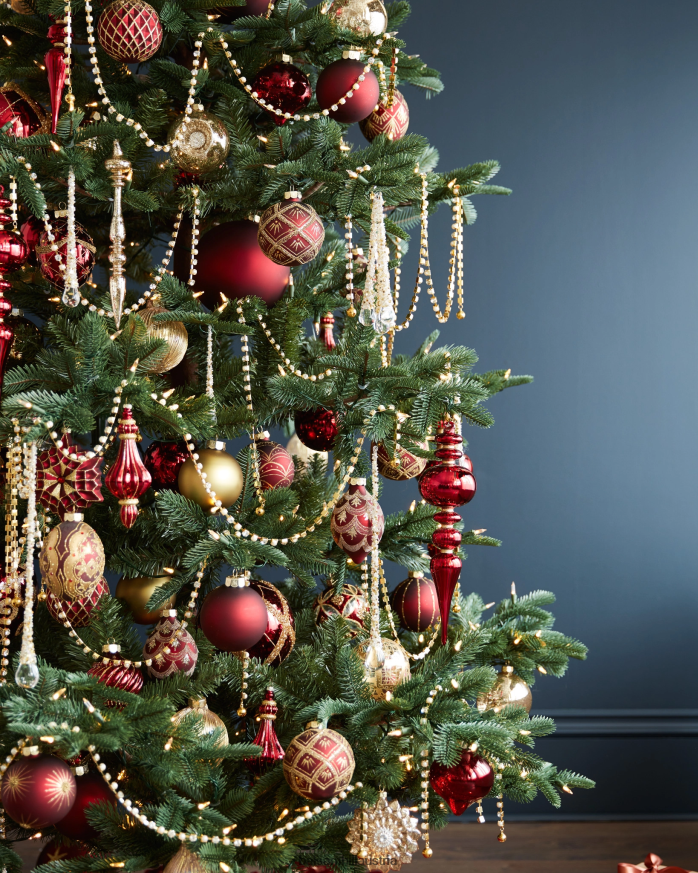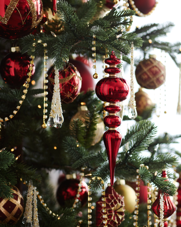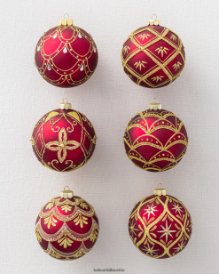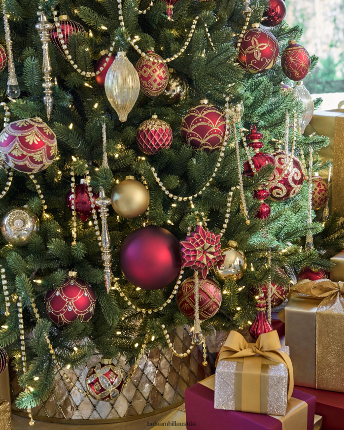 Glänzen Sie diese Saison mit burgunderroten und goldenen Glasornamenten. Komplizierte Perlen und Glitzerakzente verwandeln Ihren Baum in ein atemberaubendes Statement-Stück.