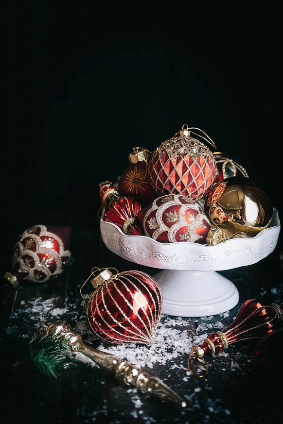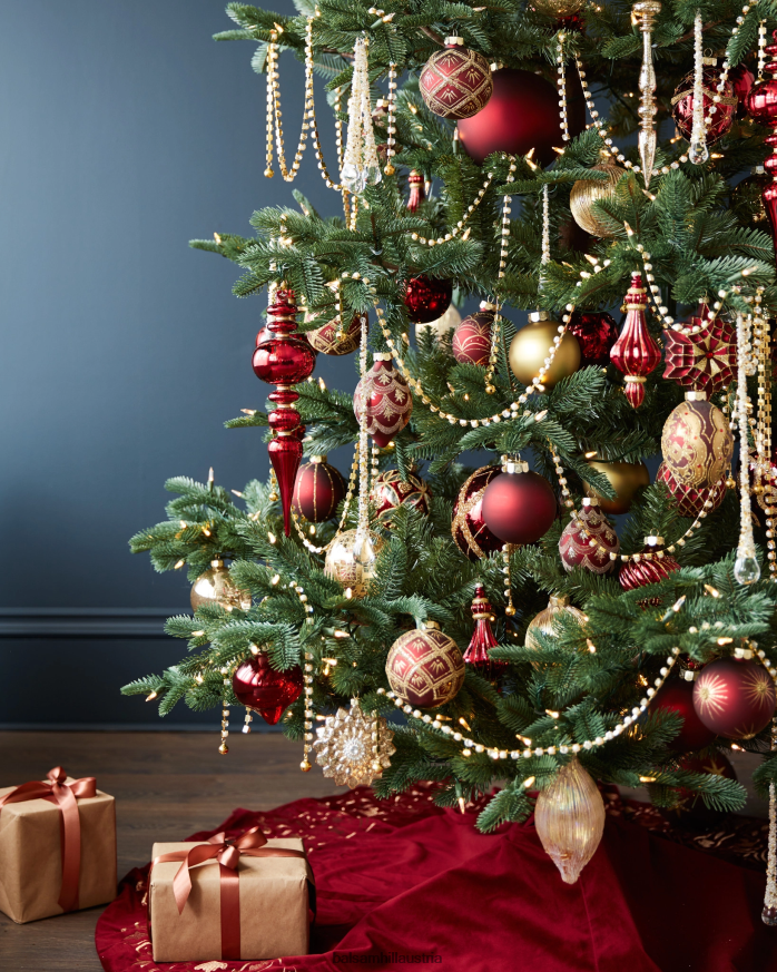- verfügen über extra große burgunderrote Kugeln mit mattem oder glänzendem Finish und goldenen Glitzerakzenten