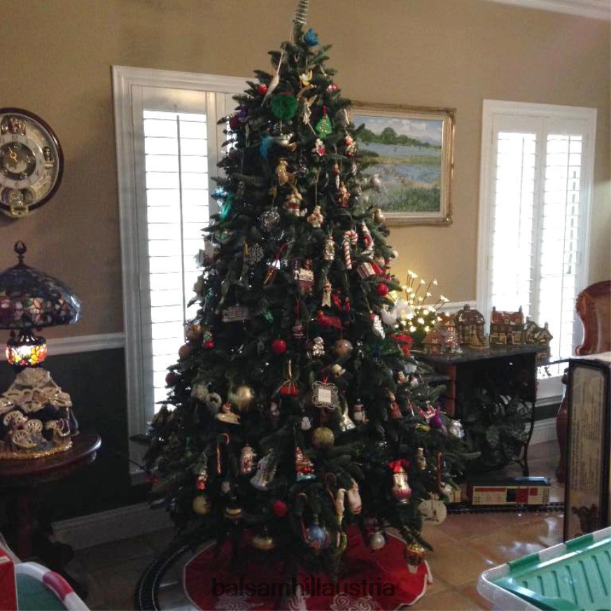 Der Bh-Edeltannen-Flip-Baum erinnert an das anmutige Aussehen von Abies Procera und verfügt über eine statuarische Form mit markanten nach unten gebogenen Zweigen. Die charakteristische True Needle -Technologie reproduziert die Weichheit und den blaugrünen Farbton des natürlichen Tannenlaubs, während klassische Nadelspitzen für zusätzliche Fülle und Halt für wertvolle Weihnachtsornamente sorgen.