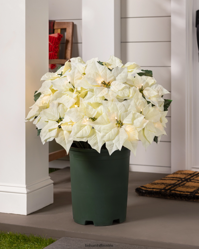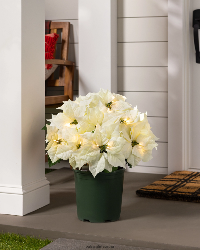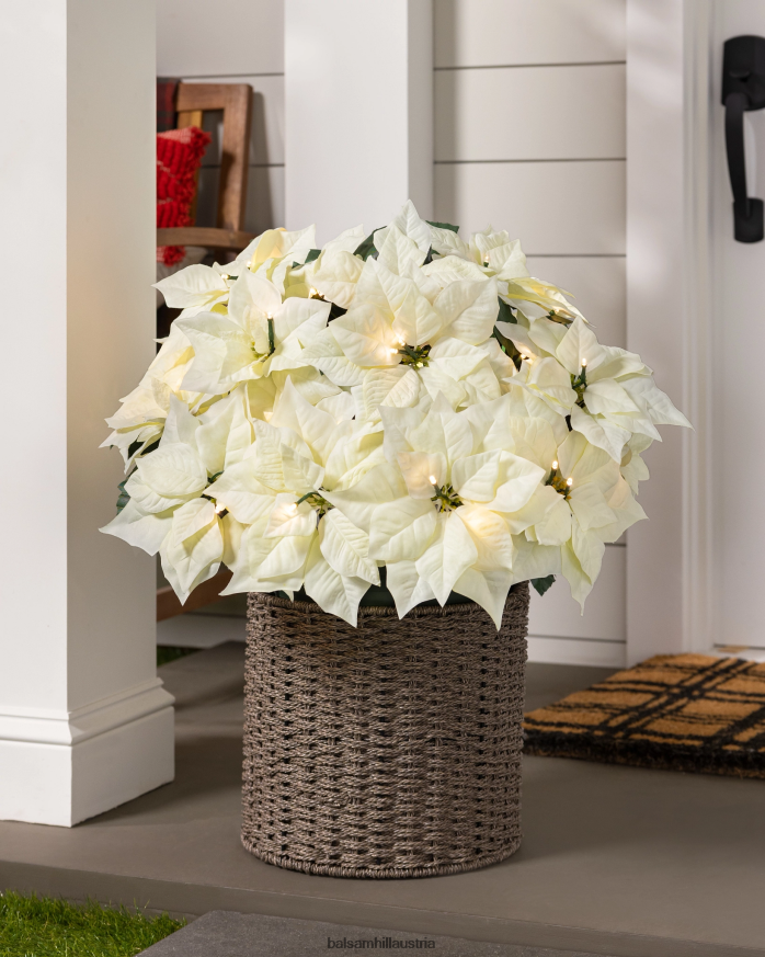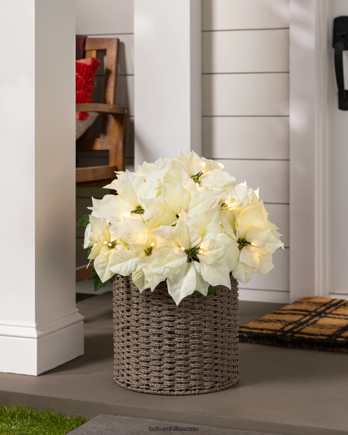 Schmücken Sie Ihre Flure oder Veranden mit typischen Weihnachtsblüten. Der sanfte Glanz und die gedämpfte Farbe inspirieren Eleganz für die kommenden Jahreszeiten.