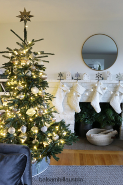 Die raue Schönheit der Natur steht im Mittelpunkt eines unserer einzigartigsten künstlichen Weihnachtsbäume. Dieser von majestätischen Bergwäldern inspirierte Baum ist schlicht gestaltet und verfügt über großzügige Lücken zwischen den Zweigen, um Platz für Ihre wertvollen Ornamente zu bieten. Sein lebensechtes Laub wird mit unserer echten Nadeltechnologie gefertigt, um das Aussehen und die Textur einer echten Tanne einzufangen.