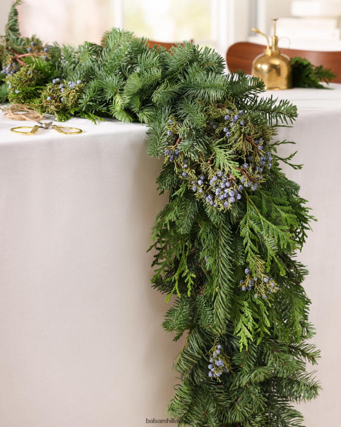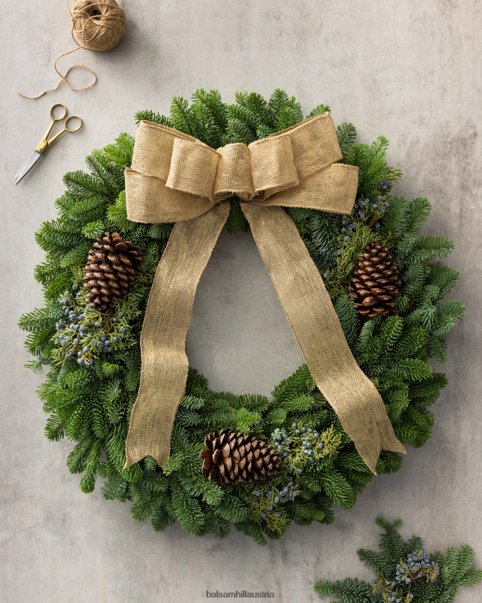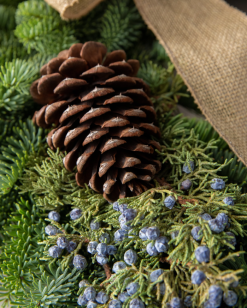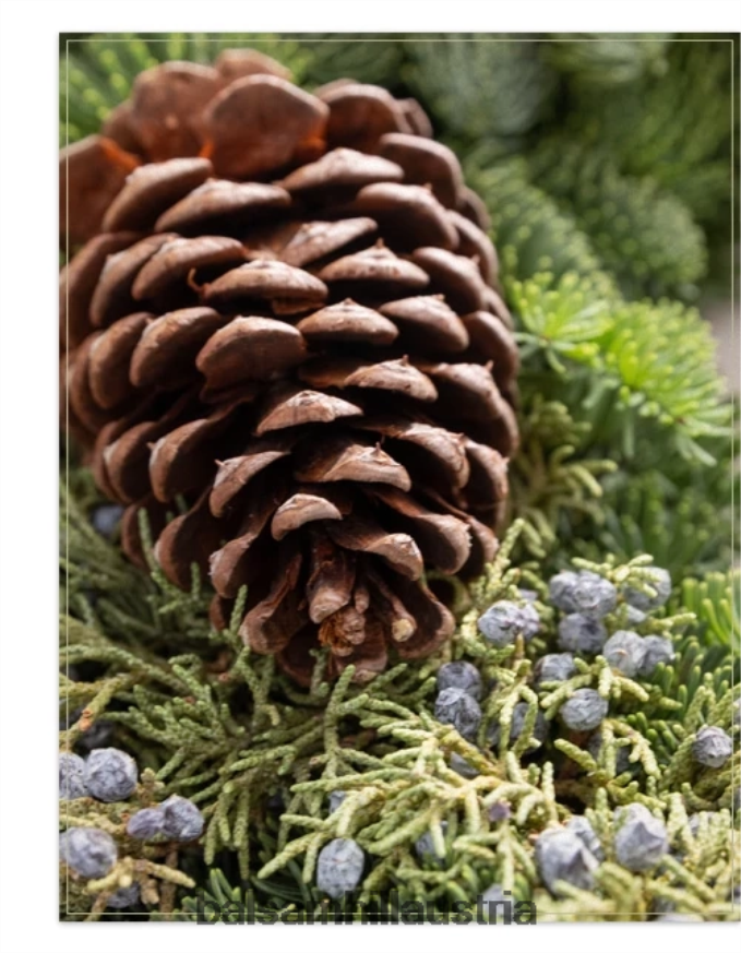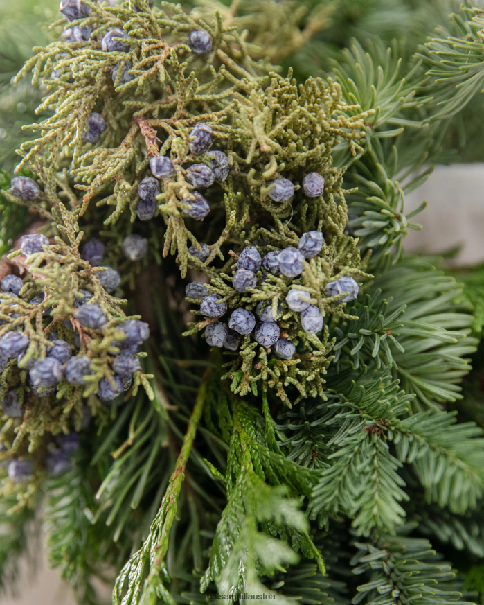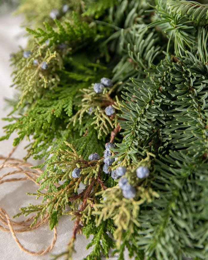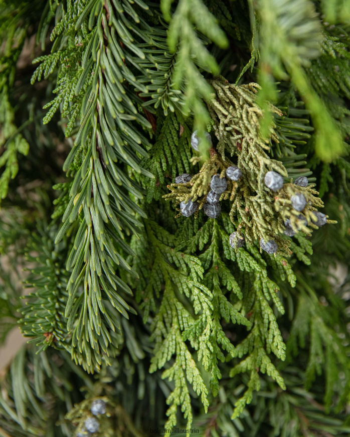 - Alle Produkte dieser Kollektion bestehen aus frischer Edel- und Weißtanne Laub mit Wacholderbeeren akzentuiert.