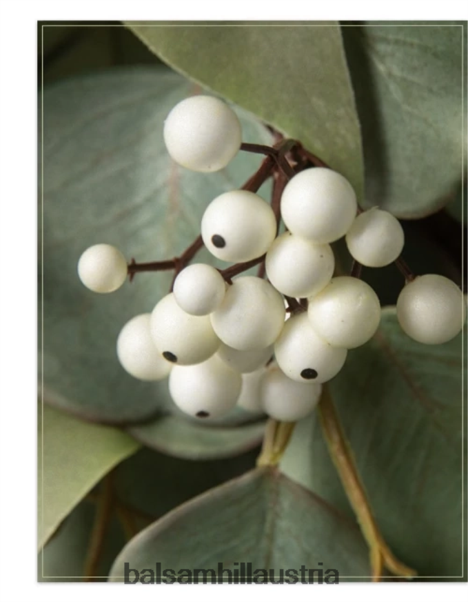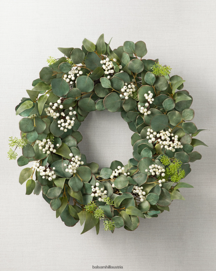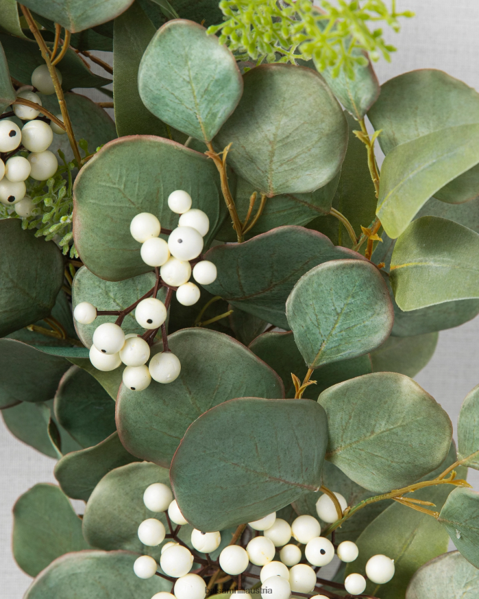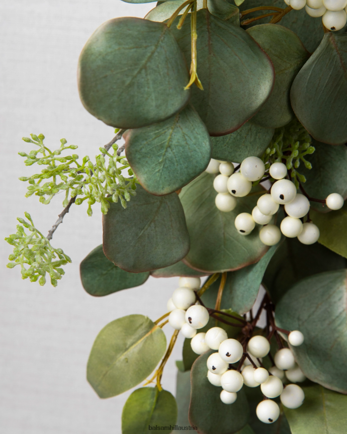 - Alle Produkte dieser Kollektion verfügen über eine Reihe von Samen-, Silberdollar- und Weiden-Eukalyptusblättern akzentuiert mit elfenbeinfarbenen Beeren