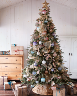 hüllen Sie Ihren Baum mit der Wärme erdiger Töne und Texturen. Eine natürliche, rustikale Kulisse verwandelt Ihre Schenktraditionen von einfachen Momenten in geschätzte Erinnerungen.