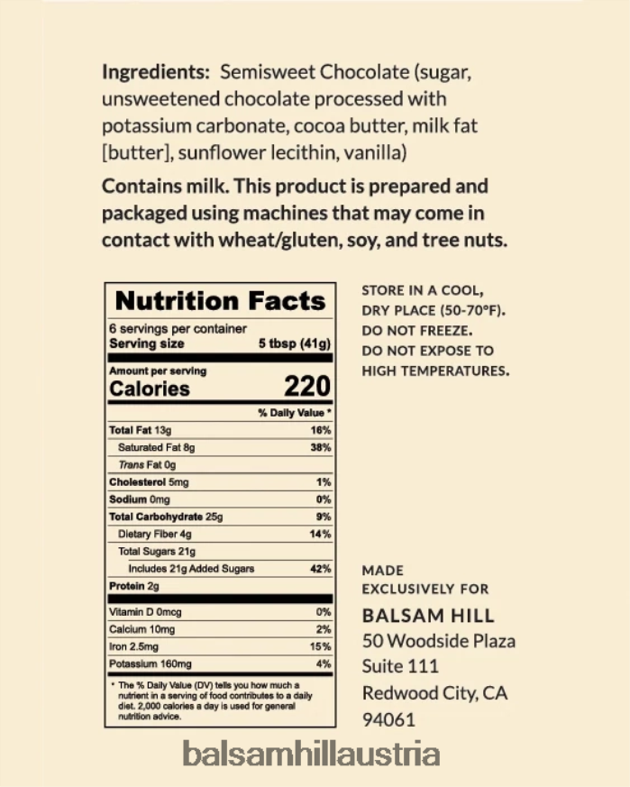 - Allergene: enthält Milch. Hergestellt in einer Anlage mit Geräten, die auch Baumnüsse und Erdnüsse, Eier, Weizen/Gluten und Soja verarbeiten.