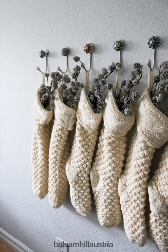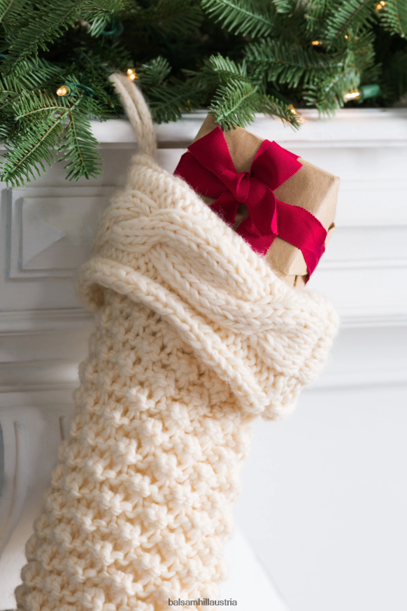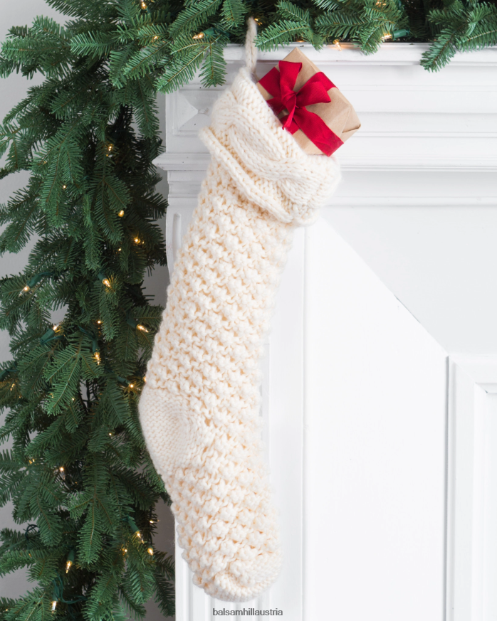 Unsere Strümpfe sind mit einem groben Ananasmuster handgestrickt und von einer jahrhundertealten Feiertagstradition inspiriert. Diese Kaminsims-Akzente sind mit weichem Stofffutter versehen, um ein Durchhängen zu verhindern, und Zopfmusterbündchen für klassischen Charme.