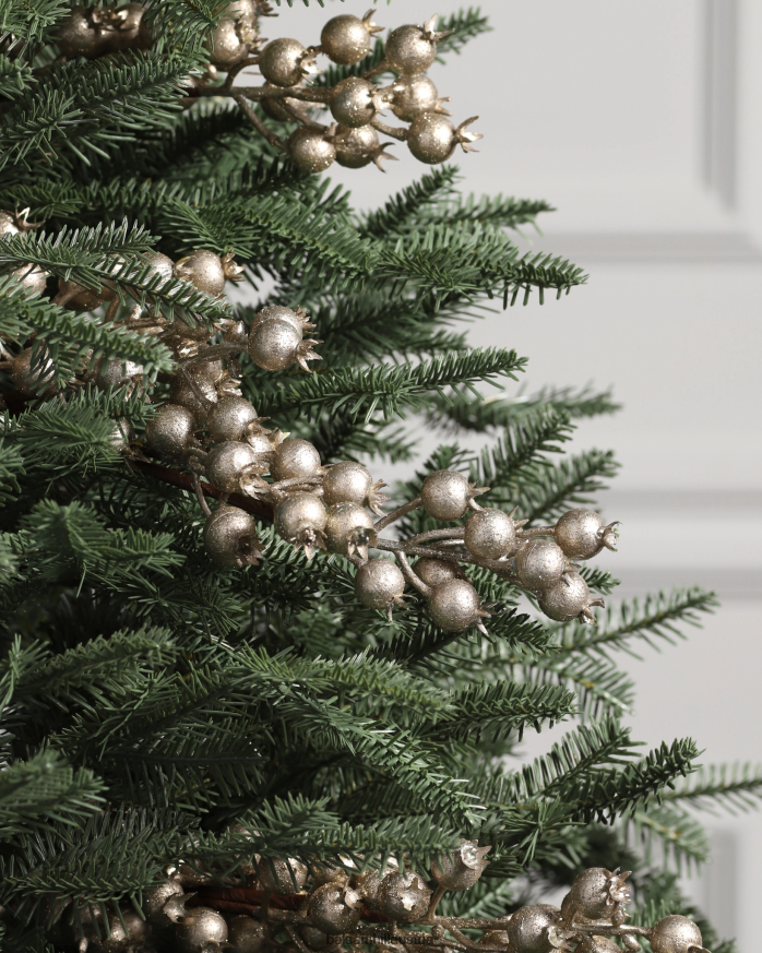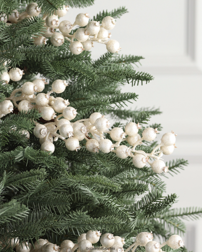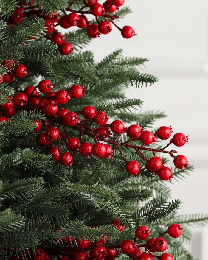 Verschönern Sie Ihr Weihnachtsgrün mit Akzenten aus Eis und Glitzer. Schimmernde Beerenspieße verleihen Ihrer saisonalen Dekoration einen luxuriösen Look.