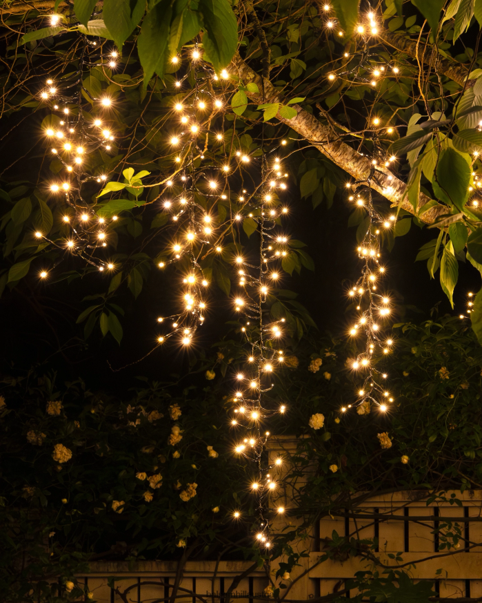 Schwelgen Sie in der Magie der Nacht mit bezaubernden Lichtern, die von Sternschnuppen inspiriert sind. Hängen Sie sich aus Ästen, um Abendessen im Freien und Zusammenkünfte im Garten zu verschönern.