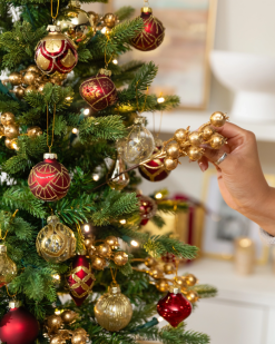 - enthält Ihre Lieblingsdekorationsthemen: nordischer Frost, leuchtendes Bordeaux und vergoldeter Glanz.