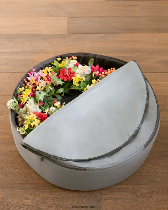 Halten Sie Ihre Kränze Saison für Saison in Form und sehen toll aus. Diese robusten Aufbewahrungstaschen verfügen über einen inneren Kleiderbügel und einen gebogenen Tragegriff, um Kränze stabil und aufrecht zu halten. Diese Tasche ist in vier verschiedenen Größen erhältlich, darunter eine, in der zwei Kränze gleichzeitig sicher aufbewahrt werden können.
