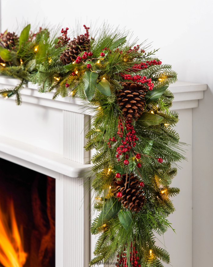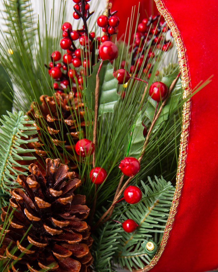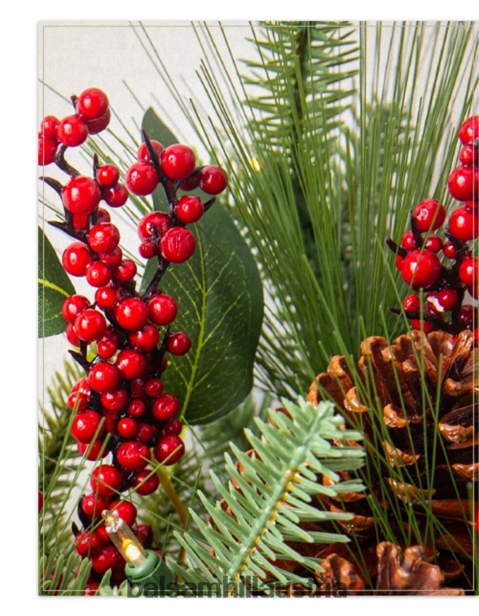 - Alle Produkte dieser Kollektion zeichnen sich durch echtes Nadellaub aus, das durch lange Nadelkiefern akzentuiert wird Zweige, Tannenzapfen und künstliche rote Beeren