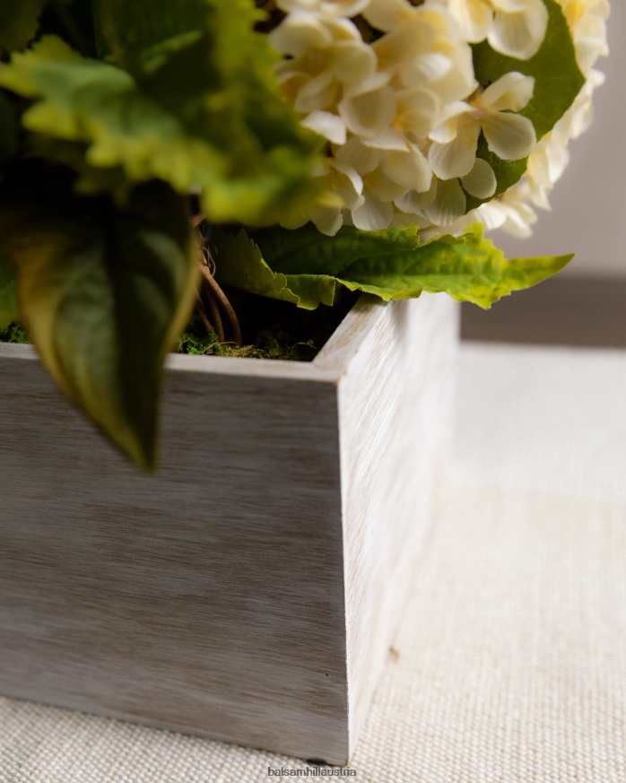 - in einem hölzernen Pflanzgefäß mit den Maßen 20” lang x 7” breit x 4,5” hoch
