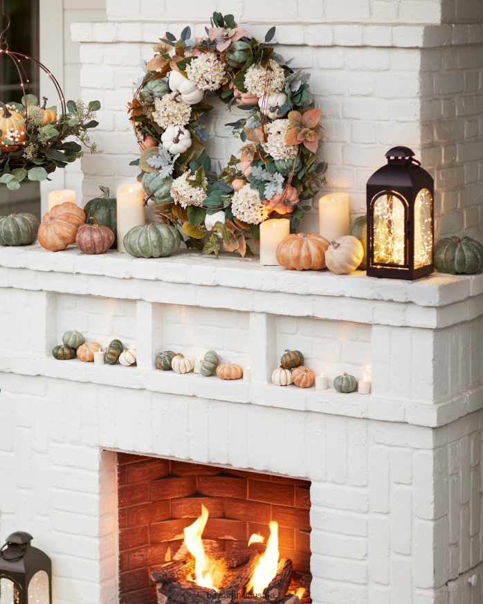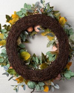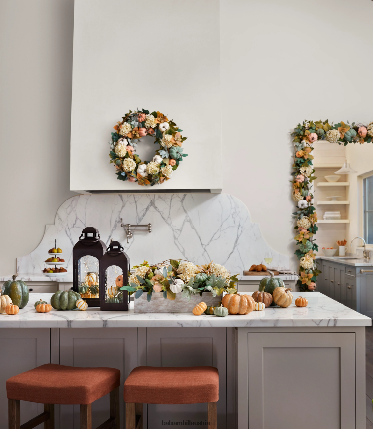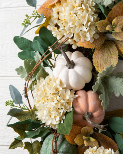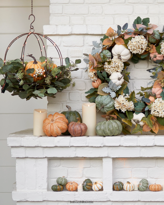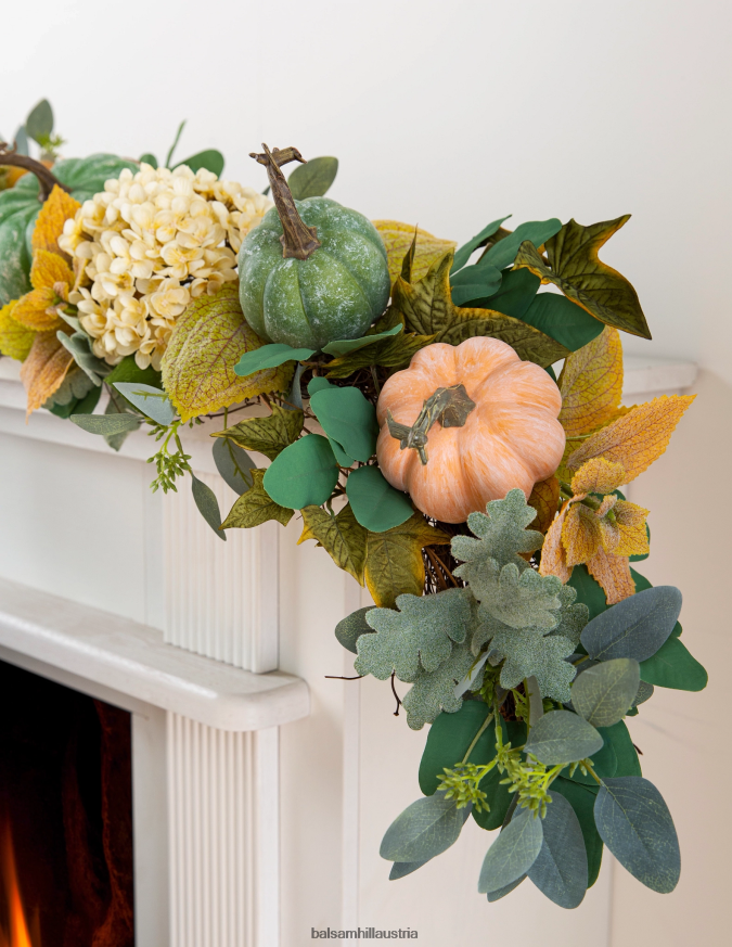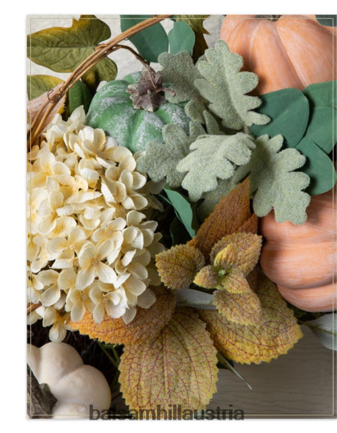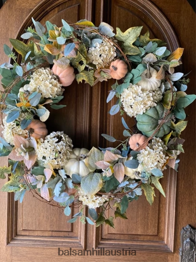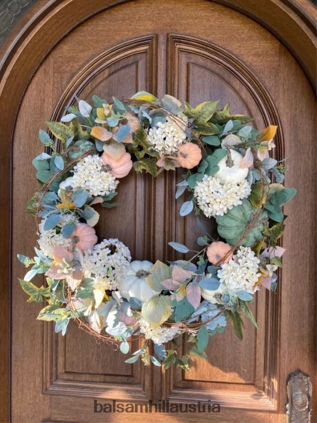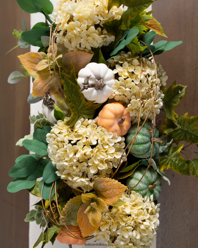 - Alle Produkte dieser Kollektion umfassen eine Auswahl an Kürbissen, Hortensien, Efeu, Eukalyptusblättern und verschiedenen Blättern