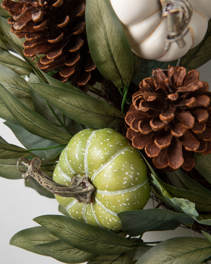 Erwecken Sie die Erntezeit mit einer Fülle bezaubernder Kürbisse und Tannenzapfen zum Leben. Verwandeln Sie vertraute Bereiche in inspirierte Räume, indem Sie sie an Fenstern oder Eingängen platzieren.