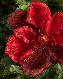 - rote glitzernde Magnolien-Picks, 12er-Set