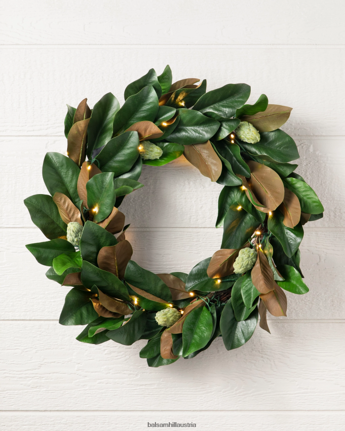 Verleihen Sie Ihrer Präsentation das ganze Jahr über Eleganz und Wärme mit lebensechten Magnolienblättern. Dekorieren Sie Kaminsimse, Veranden und Außenbereiche für einen zeitlosen Look.