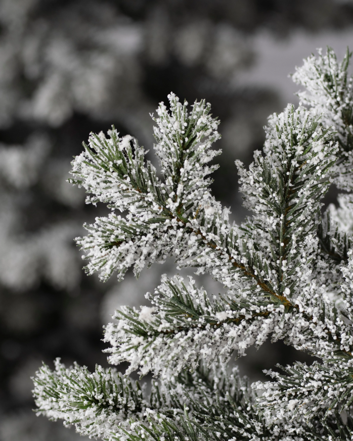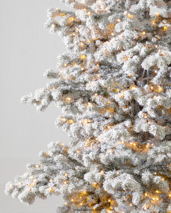 Erfreuen Sie Ihre Lieben mit der makellosen Schönheit einer weißen Weihnacht. Mit ihrer asymmetrischen Form und den schneebedeckten Spitzen verleiht diese Fichte ein festliches winterliches Aussehen, das jede Feiertagsfeier verschönert. Seine spärlichen Zweige präsentieren Ihre schönsten Ornamente, während Mikro-LED-Lichter für einen einladenden Glanz sorgen.