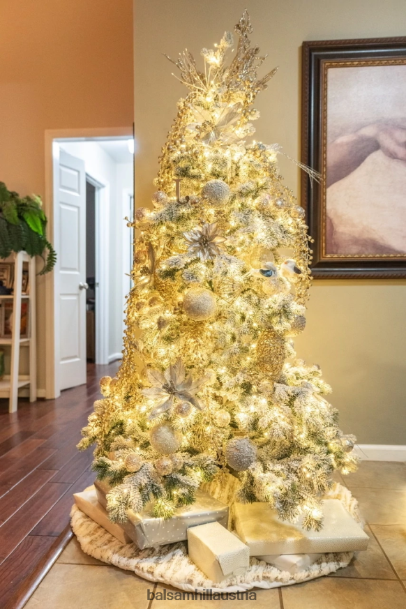 - einfaches Stecksystem beinhaltet Lichtanschlüsse im Stamm, Das Anzünden Ihres Baumes ist also so einfach wie das Anschließeno eine Steckdose. derzeit für ausgewählte vorbeleuchtete Bäume verfügbar. Weitere Einzelheiten finden Sie im Abschnitt „Spezifikationen“ unten.