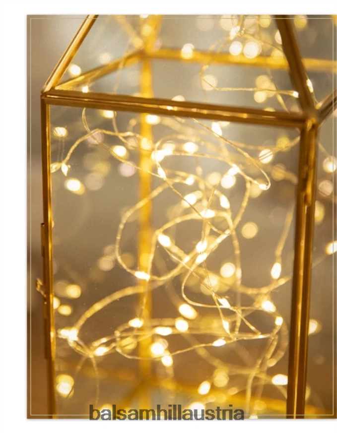 Verleihen Sie Ihrer Urlaubsszene eine magische Note, die an Glühwürmchen erinnert. Der gemütliche Schein von Lichterketten in wunderschönen Messinglaternen verleiht zeitgenössischem und klassischem Dekor Charme.