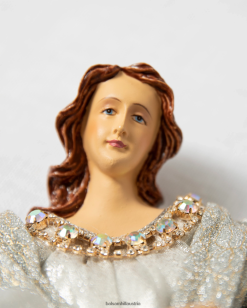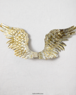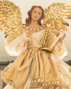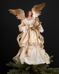 - verfügt über Flügel und Gewänder aus Metall in Gold- und Cremetönen