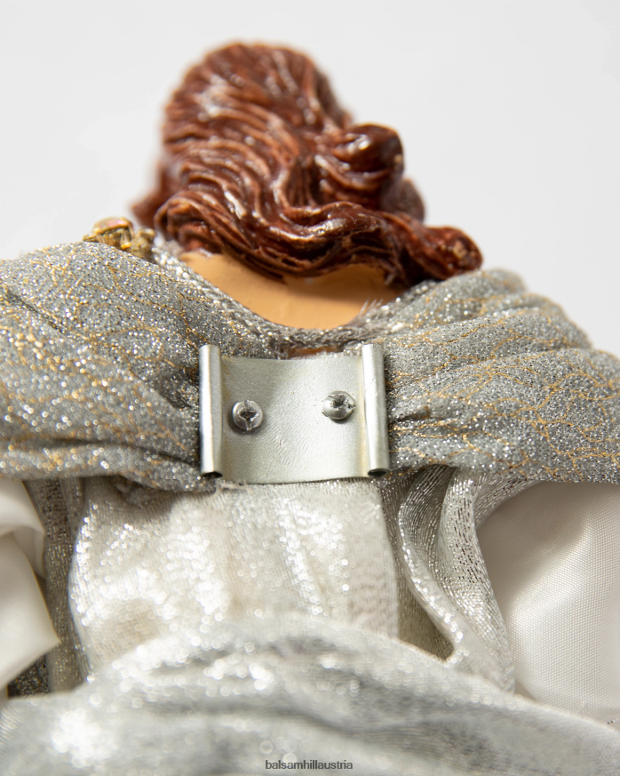- verfügt über silberne Flügel und einen Heiligenschein aus Metallblech