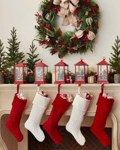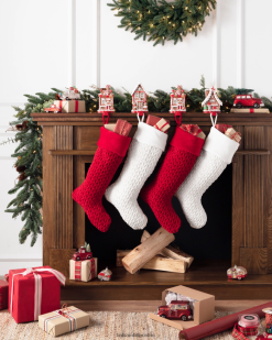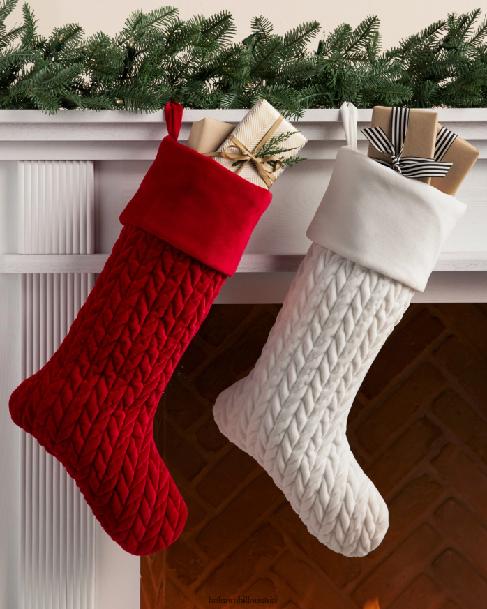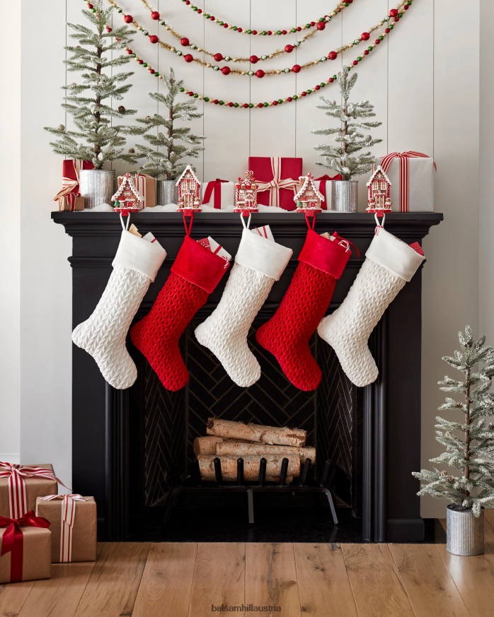 Wachsen Sie mit plüschigen Weihnachtsstrümpfen auf, die sorgfältig am Kamin aufgehängt sind. Ihr weicher, strukturierter Look verleiht Ihren Geschenktraditionen eine warme Note.