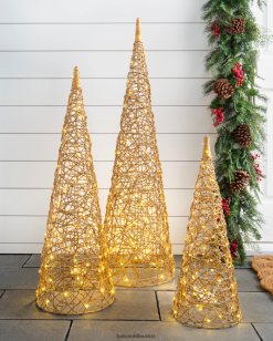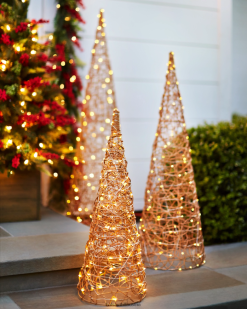 - Beleuchtete Drahtkegelbäume für den Außenbereich, 3er-Set