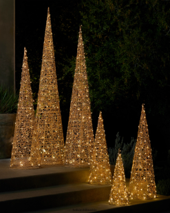 - große beleuchtete Drahtkegelbäume für den Außenbereich, 3er-Set