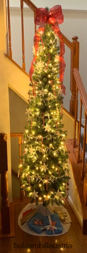 Der schlanke Bleistift-Weihnachtsbaum von Sonoma ist eine Hommage an die spektakuläre Landschaft des panoramischen Weinlandes Nordkaliforniens. Seine schlanke Silhouette verfügt über üppige, lange Nadeln in einem dunkelgrünen Farbton für einen außergewöhnlich naturgetreuen Look.