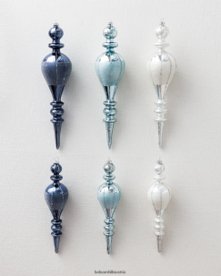 - stellen eine Auswahl dar bestehend aus Kugeln, Endstücken und Tropfen in Blau- und Silbertönen mit Glitzer- und Perlenakzenten