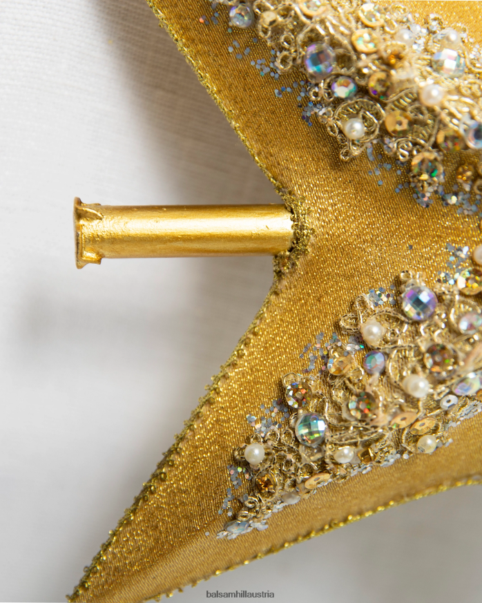- aus Eisen gefertigt und mit Pailletten, Perlen, Glitzer und Stoff verziert