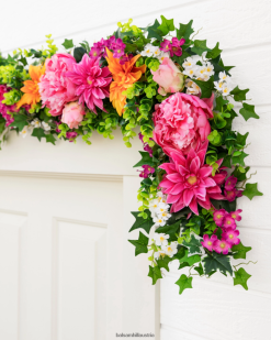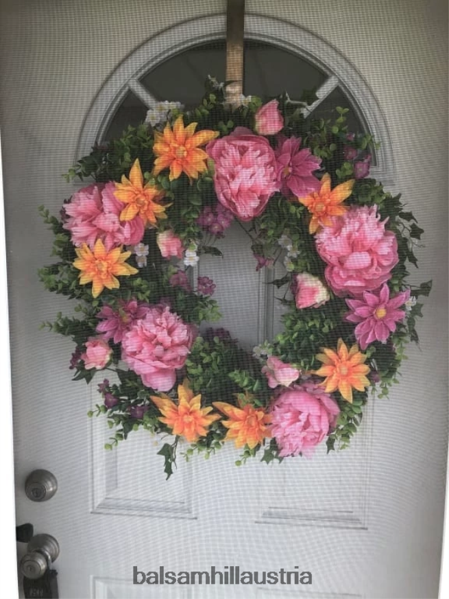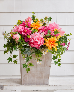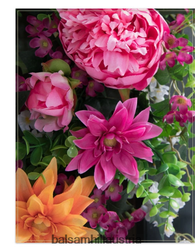 - Alle Produkte dieser Kollektion verfügen über eine Reihe künstlicher Blumen, darunter Pfingstrosen, Gänseblümchen, Dahlien, Chrysanthemen, Lavendel, Efeu und naturgetreues Buchsbaumlaub.