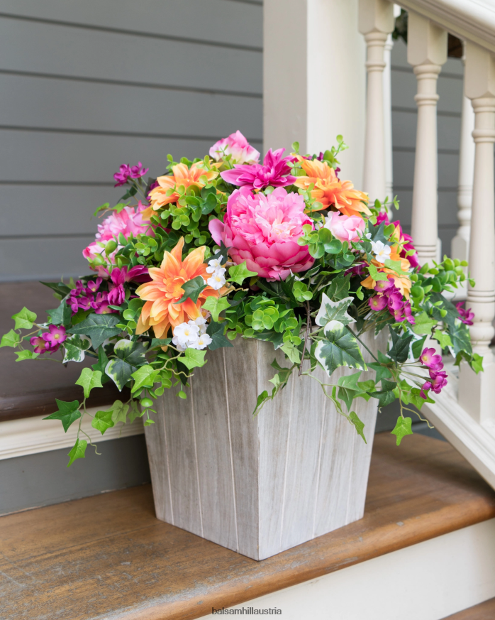 Machen Sie die Saison mit einer Outdoor-sicheren Blumenkollektion für immer anhaltend. Lebhafte Frühlingsblüten in den Farbtönen Rosa, Magenta und Orange verleihen Ihren Räumen eine bezaubernde Atmosphäre.