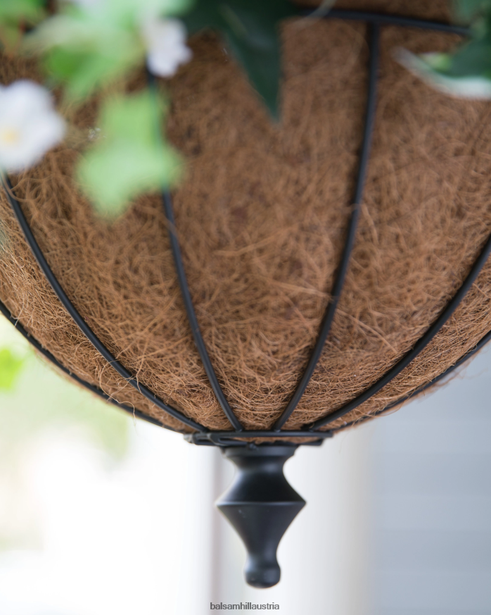 - Set mit Kokosfaser in einem metallgerahmten Träger mit den Maßen 12” im Durchmesser x 9” hoch