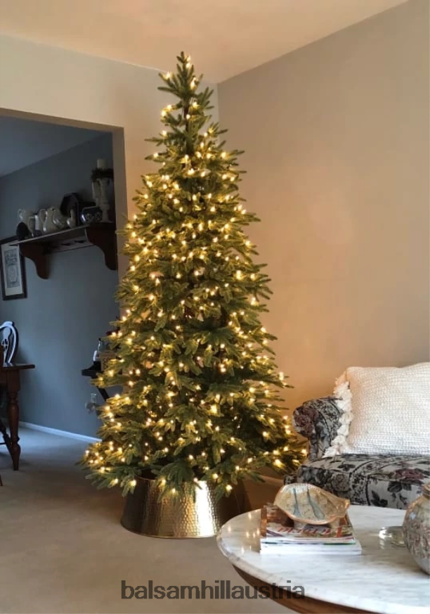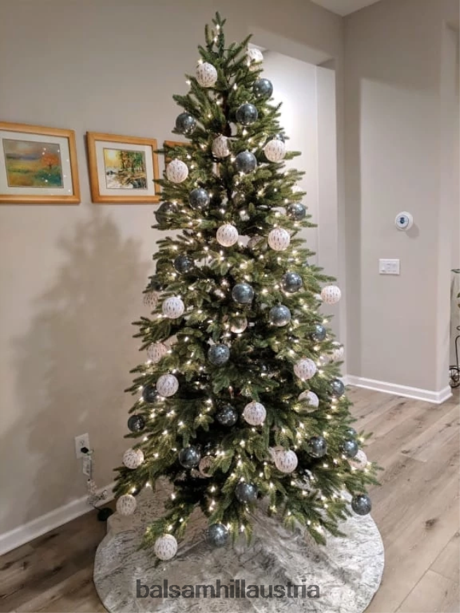 verleihen Sie Ihrer Weihnachtsdekoration einen Hauch von Raffinesse. Dieser wunderschöne, schlanke Baum strahlt Eleganz aus und zeichnet sich durch sein üppiges Laub und seine anmutige Silhouette durch ein außergewöhnlich naturgetreues Aussehen aus.