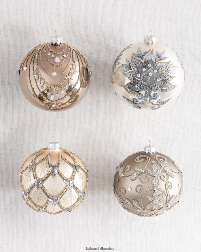 - Elfenbeinfarbene und silberverzierte Glaskugelornamente, 4er-Set
