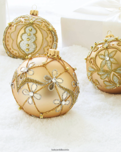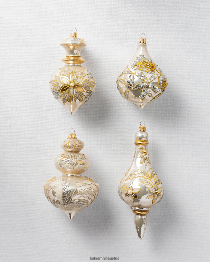 - Elfenbeinfarbene, mit Endstücken verzierte Glasornamente, 4er-Set