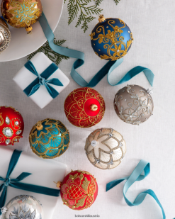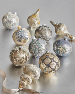 Die Sorgfalt und Hingabe, die in den Prozess von Silverado gesteckt wird, stammt vom Familienpatriarchen Jerzy Jaroszynki, der 1959 eine Glaswerkstatt in Polen eröffnete. Fast 50 Jahre später wurde Silverado geboren, indem Jerzys Töchter und Schwiegersöhne das Familienhandwerk fortführten. Jedes von Silverado hergestellte Ornament wird im bezaubernden Stil der „alten Welt“ hergestellt, indem Glasornamente in eine Metallform geblasen und dann die Innenseite mit Silber beschichtet werden. Die Verzierungen sind dann sorgfältigSie sind größtenteils handbemalt und mit vielen Detailschichten verziert, was oft mehrere Tage in Anspruch nimmt.