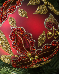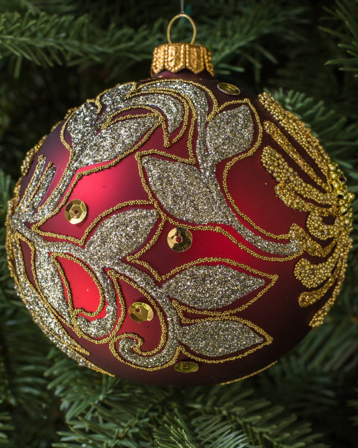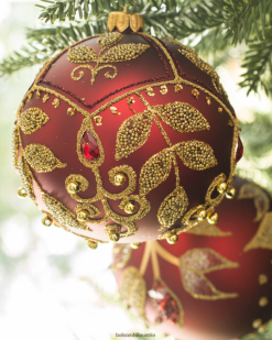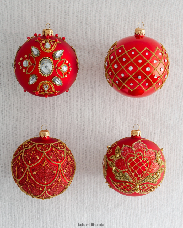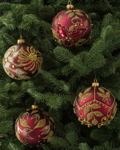- Rot und Grün Verzierte Glaskugel-Ornamente, 4er-Set