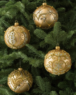 - Gold- und silberverzierte Glaskugelornamente, 4er-Set