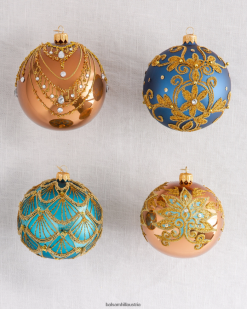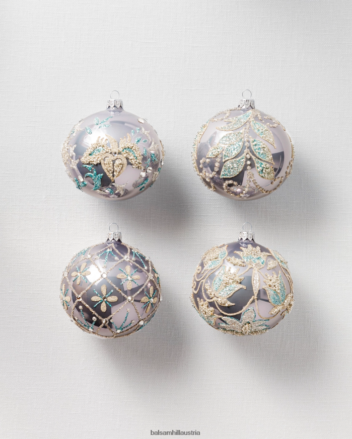 - Perlmuttblau dVerzierte Glaskugel-Ornamente, 4er-Set