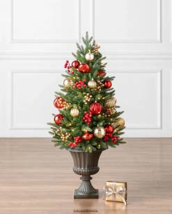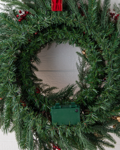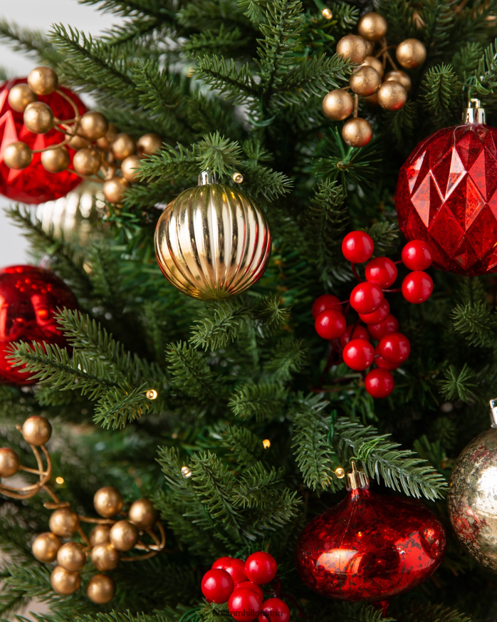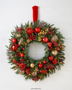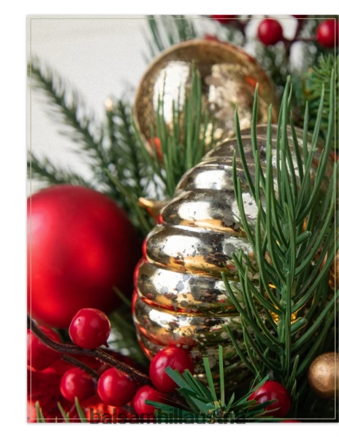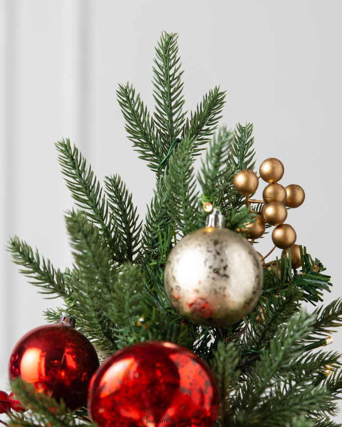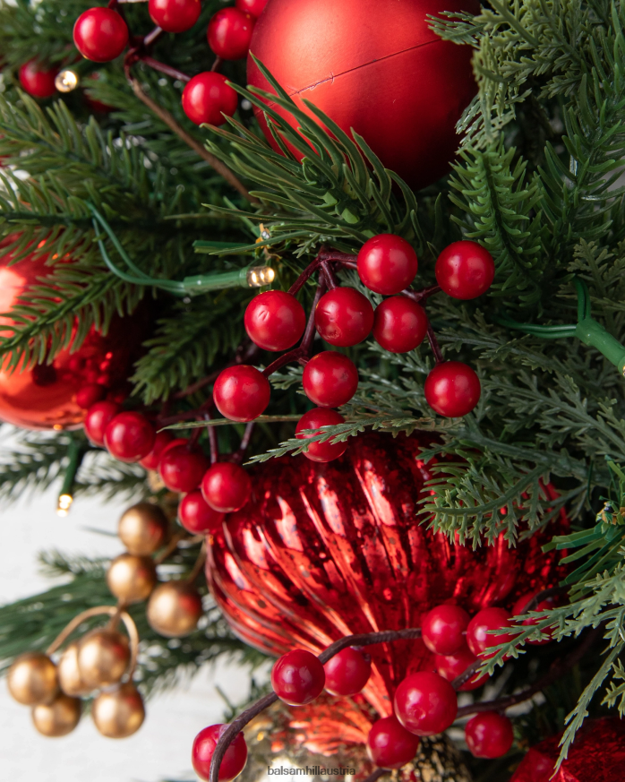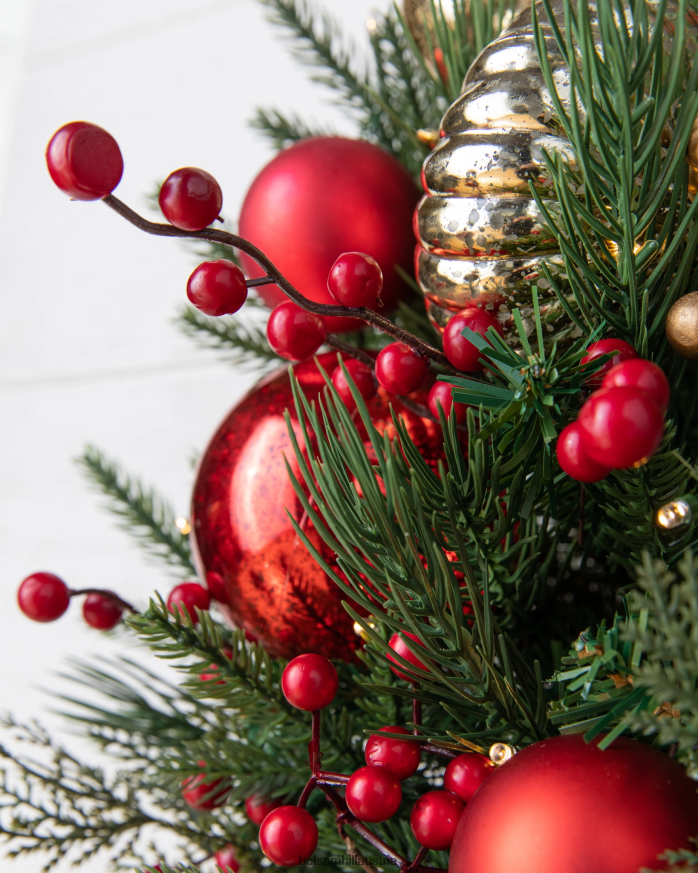 - Alle Produkte dieser Kollektion verfügen über künstliches Zypressenlaub, das mit bruchsicheren Ornamenten verziert ist, rote Beeren, und natürliche Tannenzapfen
