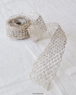 - 10yds x 2,5”x Platin-Stretch-Netzband
